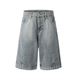 ZY כניסות חדשות מכנסיים רחבים לגברים 100% כותנה ג'ינס רחב שטוף לוגו מותאם אישית מכנסי ג'ינס קצרים לגברים